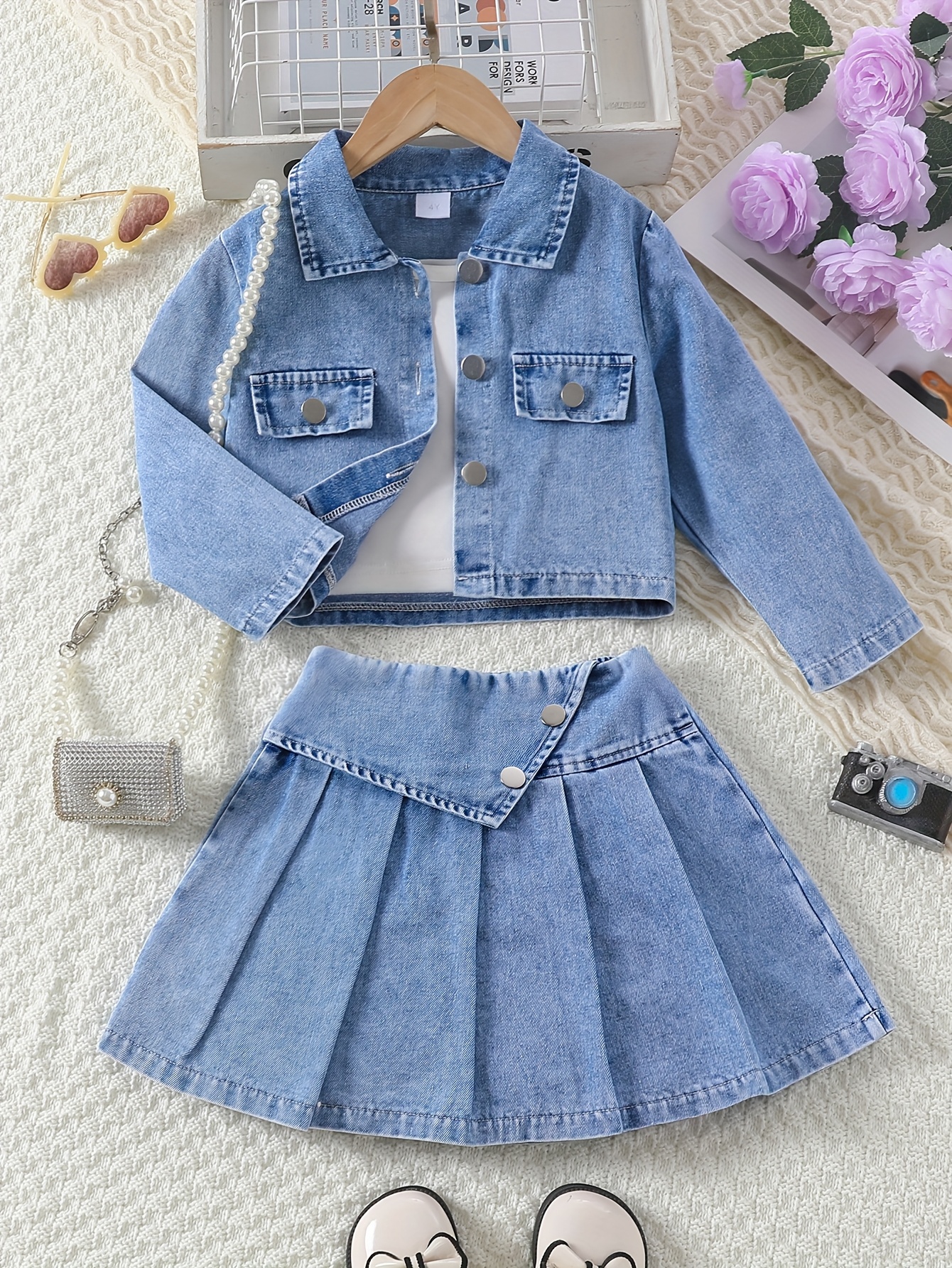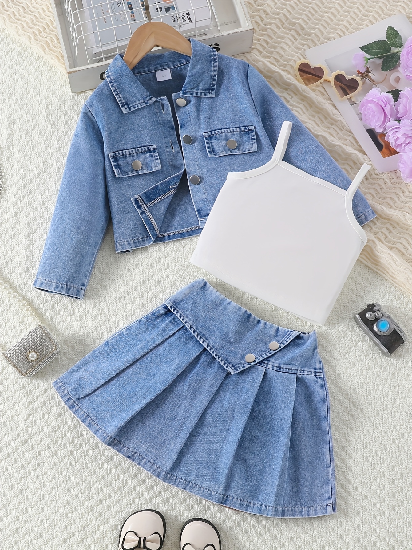 Soyez le premier à laisser votre avis sur “Ensemble 3 pièces fille : veste en jean, débardeur et jupe plissée. Idéal pour l’automne et l’hiver.”